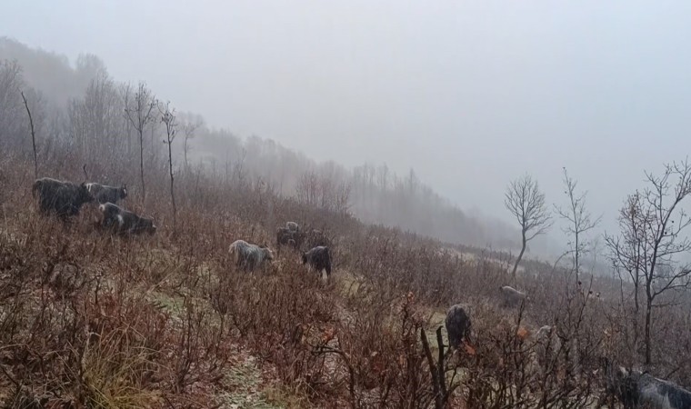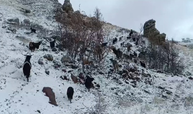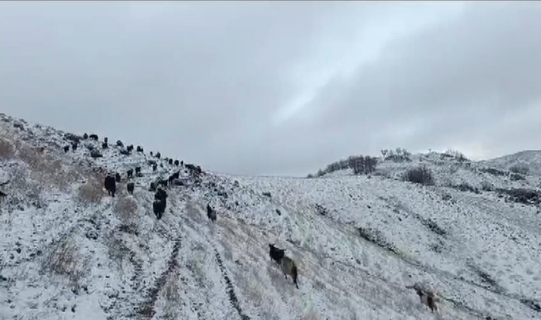 Muş’un Karabey köyüne bağlı Kamiş mezrasında otlatmak için kırsala çıkarılan küçükbaş hayvanlar, aniden bastıran kar ve tipi nedeniyle zor anlar yaşadı. Kar yağışı ve fırtınada zor anlar yaşayan hayvanları bir arada tutmaya çalışan çoban, sürüyü köye güçlükle ulaştırdı. Etkili olan kar yağışı ve fırtına dolayısıyla zor anlar yaşadığını söyleyen besicilerden Abuzer Güngör, “Etkili olan yağmur yerini kar yağışına bıraktı. Hayvanlarımı dağda otlatırken kar yağışı etkisini artırdı. Ben ve hayvanlarım kara yakalandık. Şu an hayvanlarımı eve doğru götürmeye çalışıyorum” dedi.