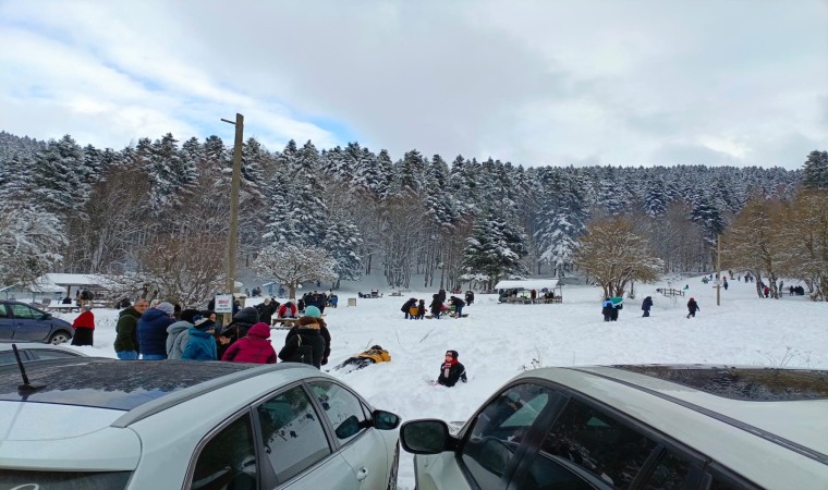 Bolu’nun doğa harikası Abant Gölü Milli Parkı’nda gece saatlerinde etkili olan kar yağışı ile kar kalınlığı 50 santimetreye ulaştı. Kar yağdığını duyan tatilciler ise Abant’a akın etti.