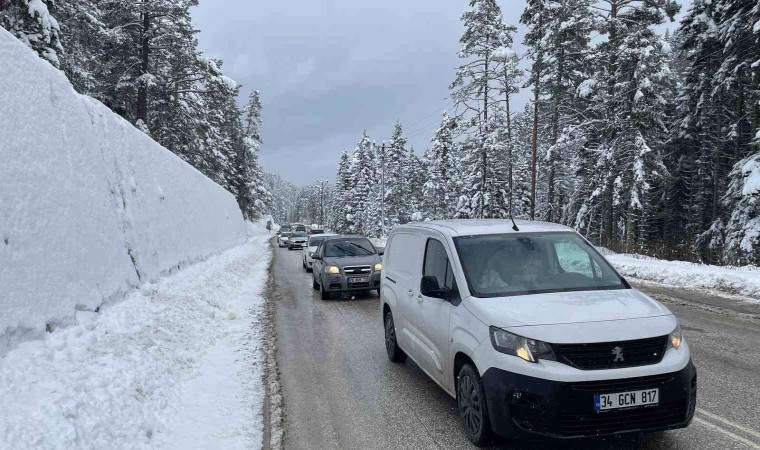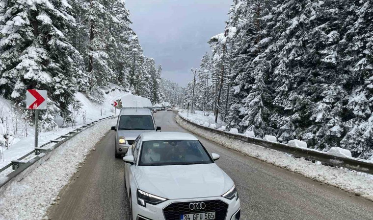Bolu’da 2 gündür aralıklarla etkili olan kar yağışı gece saatlerinde yoğun şekilde etkisini gösterdi. Yoğun kar yağışının etkili olduğu Abant Gölü Milli Parkı’nda kar kalınlığı 50 santimetreye ulaştı. Dört yanı ormanlarla çevrili olan milli parkta kartpostallık görüntüler ortaya çıktı. Kar yağdığını duyan tatilciler ise Abant’a akın etti. Göl etrafında turlayan ve bol bol fotoğraf çekinen vatandaşlar, keyifli vakit geçirdi. Öte yandan Abant Gölü Milli Parkı’nın girişinde uzun araç kuyrukları oluştu.