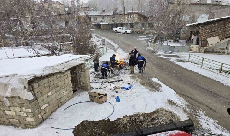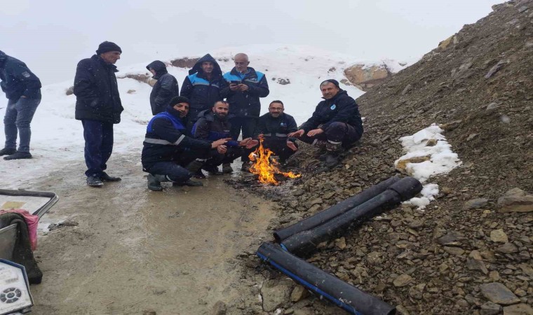 HAKKARİ (İHA) – Hakkari Belediyesi ekipleri, kar yağışı ve dondurucu havaya rağmen ateş yakarak su arızası giderdi.