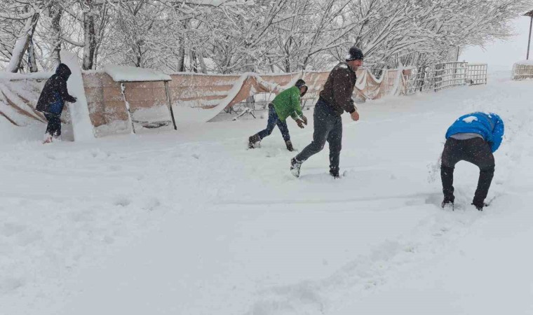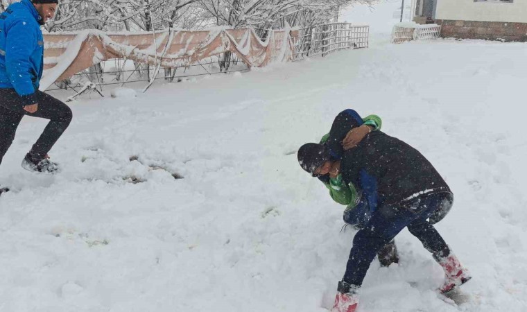 İlçede etkili olan kar yağışı beraberinde olumsuzlukları da getirdi. Kar yağışını fırsata dönüştüren çocuklar, 15 günlük tatili kartopu oynayarak ve karda güreş yaparak değerlendiriyor.