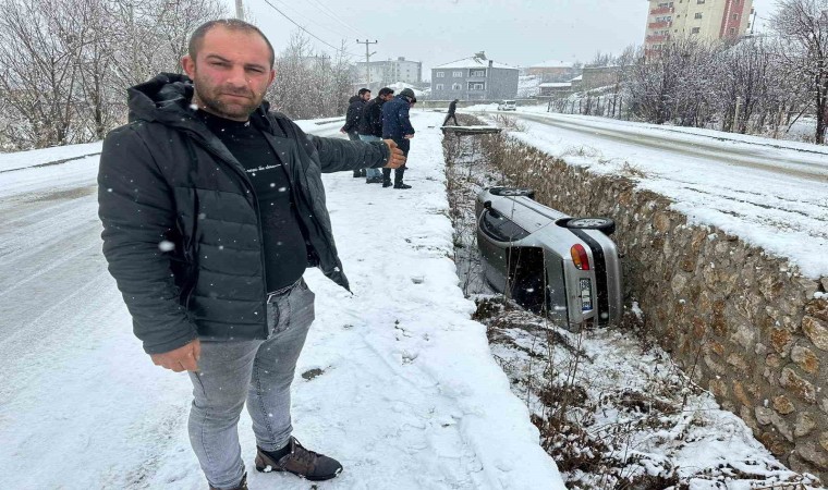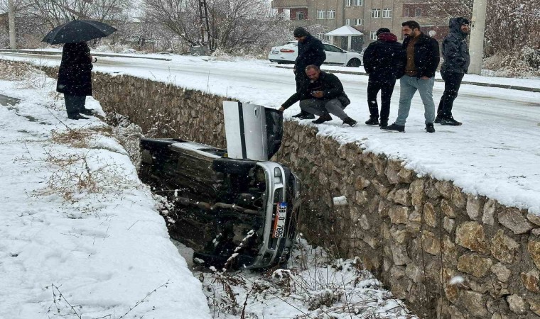 Hakkari’nin Yüksekova ilçesinde yoğun kar yağışından dolayı kontrolden çıkan otomobil dereye düşerken, sürücüsü ise yara almadan kurtuldu.
