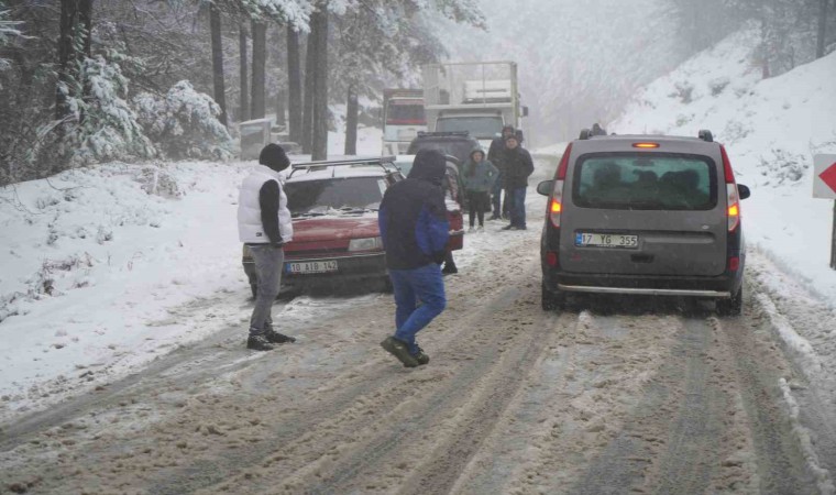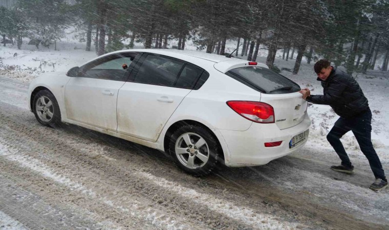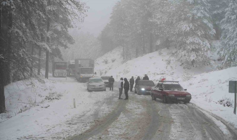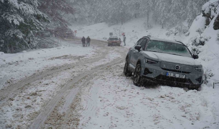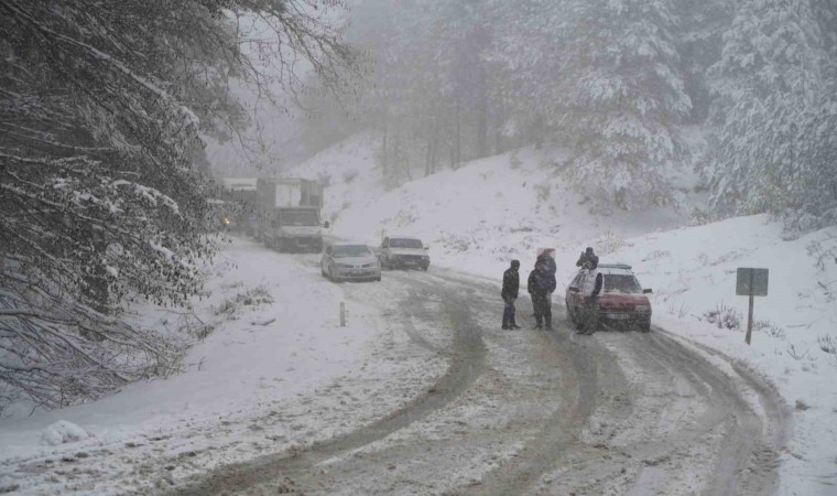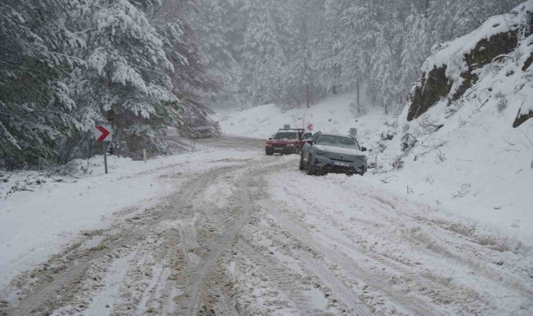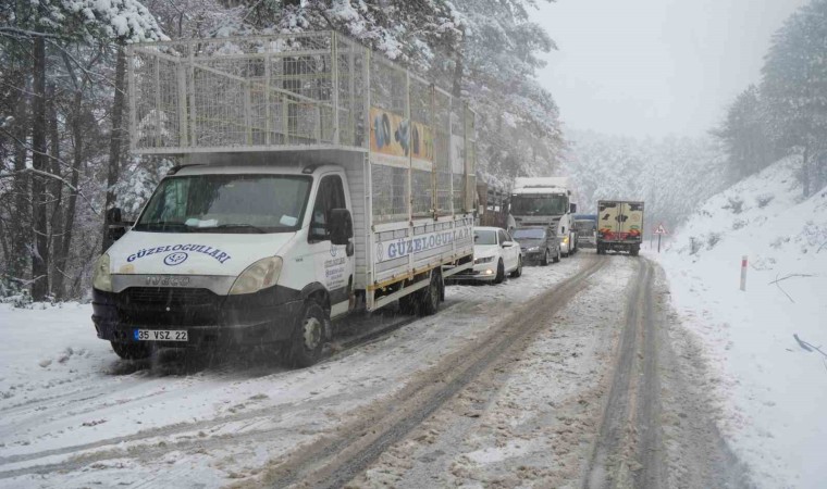 Kazdağları’nda etkili olan kar yağışı nedeniyle Edremit-Yenice kara yolunda ulaşım zaman zaman durma noktasına geliyor. Kar kalınlığının 20 santimetreyi bulduğu bölgede, özellikle Hanlar ve Deve Boynu mevkilerinde sürücüler zor anlar yaşıyor. Kar yağışı nedeniyle ilerlemekte zorluk çeken onlarca araç uzun kuyruklar oluşturdu.
