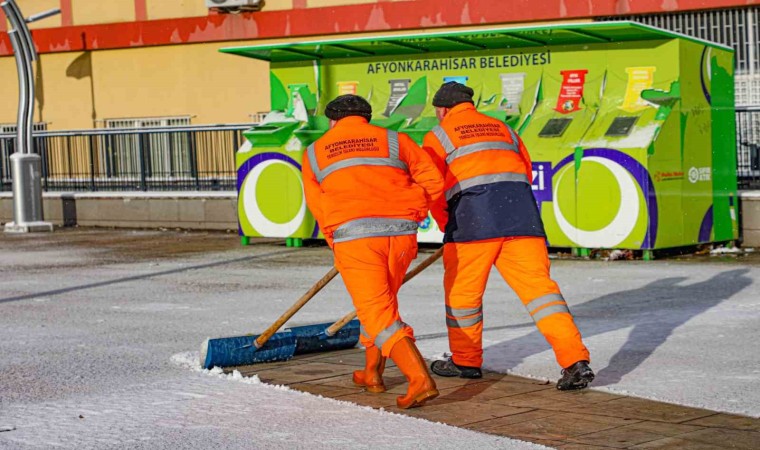 Afyonkarahisar Belediyesine bağlı ekipler kent merkezinde sabah erken saatlerde aniden bastıran yağış sonrası hummalı bir kar temizleme çalışmasına girişti. Ekipler özellikle kaldırımların temizlenmesi için yoğun bir çalışma başlattı. Çalışmalar kent merkezi ile birlikte arar sokaklarda da yapıldı. 200’e yakın personel kaldırım ve yolların açık olması için yoğun bir mesai harcarken çalışmanın günün ilerleyen saatlerinde de devam edeceği belirtildi.