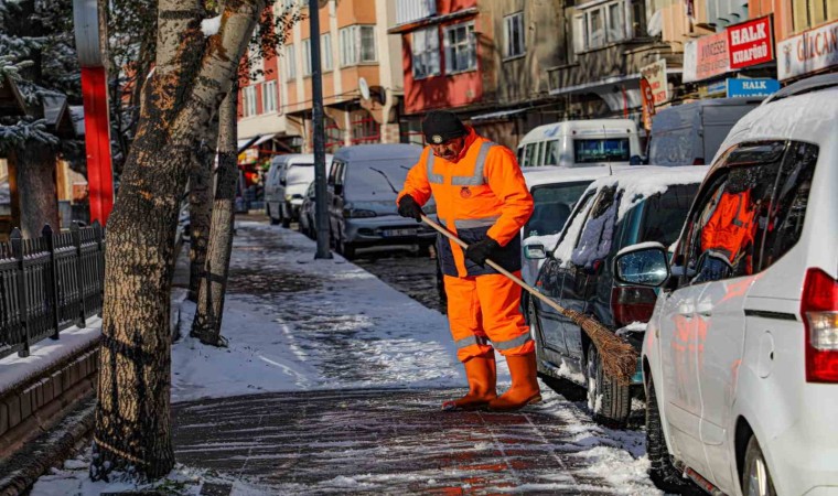 Afyonkarahisar’da yağan mevsimin karı sonrası alarma geçen belediye ekipleri yollarla birlikte kaldırımlarda hummalı bir temizlik çalışmasına girişti.