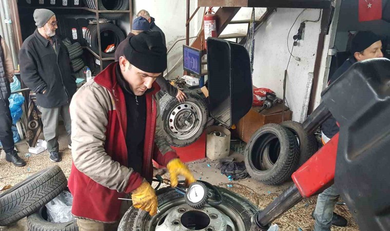 Oto lastik ustası Lütfi Uysal, kar yağışının geçen yıla göre erken gerçekleştiğini ve sürücülerin hazırlıksız yakalandığını belirterek, araç sahiplerinin bir an önce kış lastiklerini taktırmaları gerektiğini söyledi.
