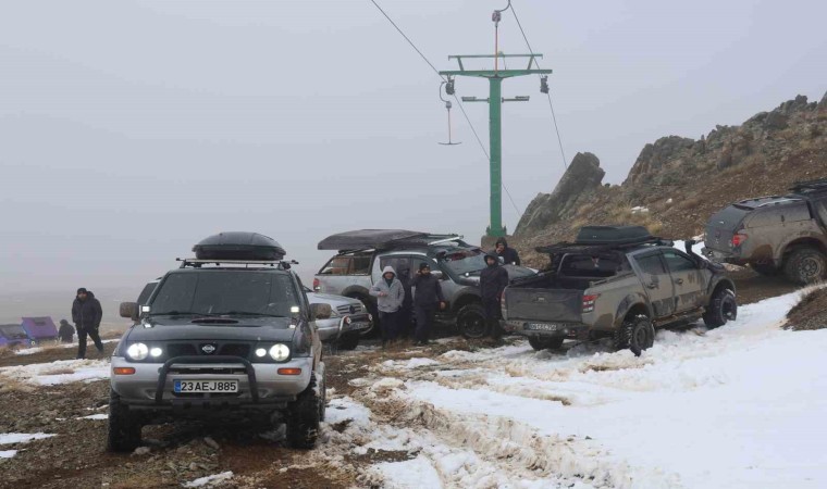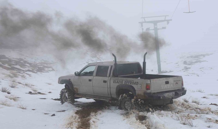 Elazığ’da bulunan Hazarbaba Dağı, yeteri kadar kar yağmayınca Off Road tutkunlarının durağı haline geldi. Araçların engebeli arazide ilerlemesi renkli görüntüler oluşturdu.