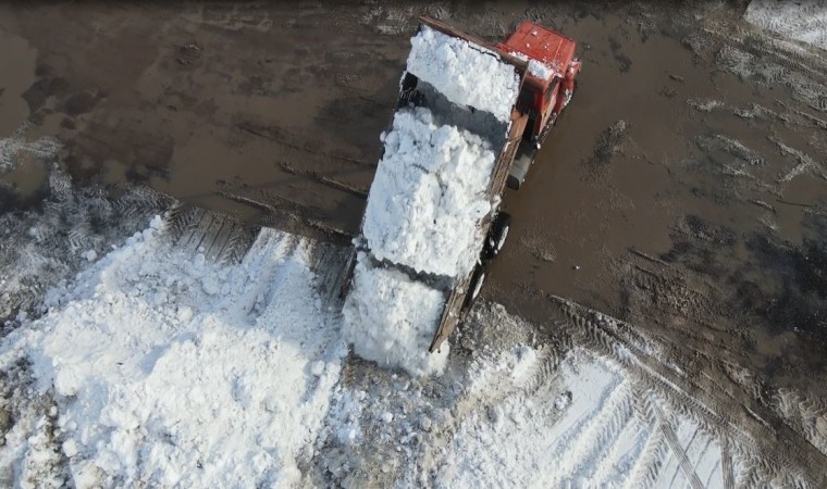 55 yıllık kar rekorunu kıran Ardahan’da kar kütleleri yaklaşık 10 gündür kamyonlarla şehir dışına taşınıyor.