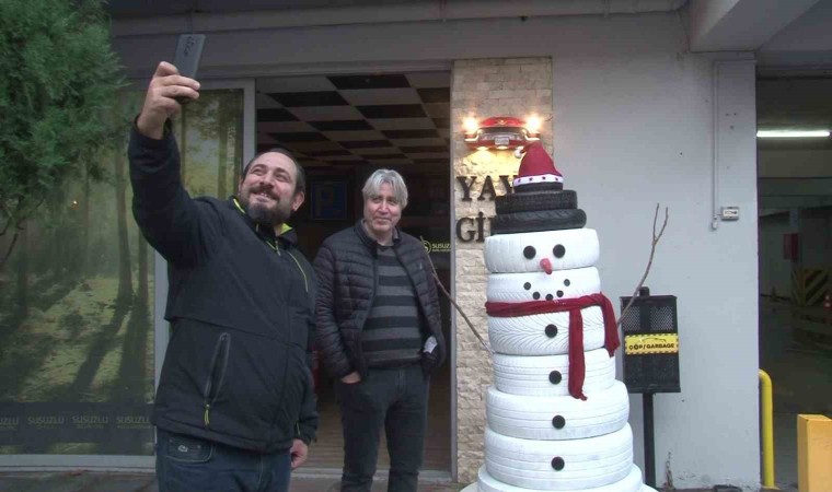 Çevredeki vatandaşların ‘gerçek mi?’ şeklinde tepkileriyle karşılaştıklarını aktaran Demir, “Lastikleri temin etmemiz, boyaları yapmamız derken yaklaşık bir hafta içerisinde ‘lastikten kardan adamı’ tamamladık. En azından hem etrafa beyazlık kattık hem de geri dönüşümü renklendirmiş olduk. Çevreden geçen insanların da dikkatini çekiyor. Gelip fotoğraf çekiliyorlar. Hatta ‘gerçek mi?’ diye soran bile oldu. İnsanlar kar yağışını özlemiş durumda. Biz de yenilikçi bir şeyler oluşturmak istedik” ifadelerine yer verdi.