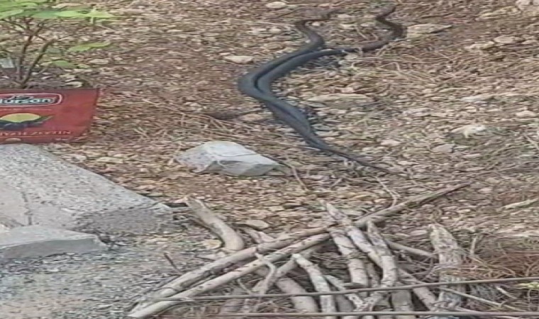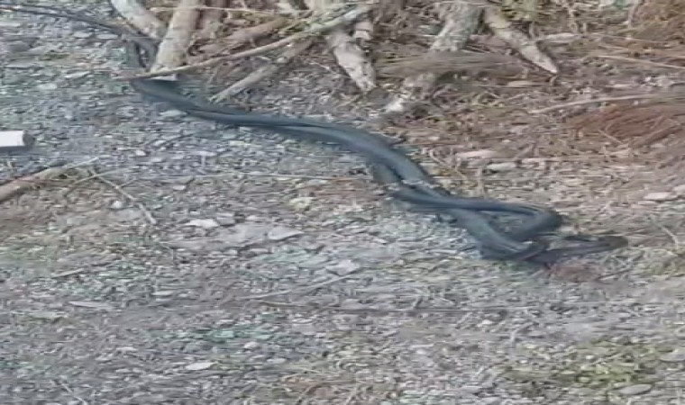 Hatay’ın Payas ilçesinde bir evin bahçesine giren boyları bir buçuk metreyi bulan 2 kara yılanın çiftleşme dansı, ikamet sahibi tarafından kamerayla görüntülendi.