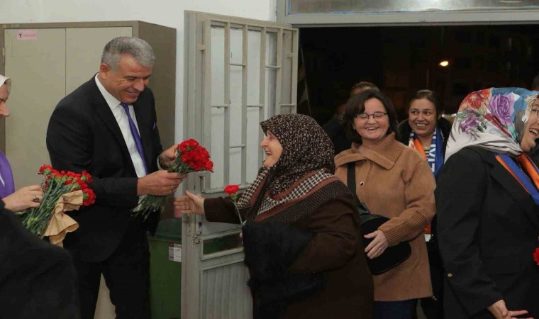 Programa katılım sağlayan tüm katılımcıları kapıda karşılayan Başkan Ahmet Elbi 8 Mart Dünya Kadınlar günü dolayısı ile kadınlara da çiçek takdim etti.