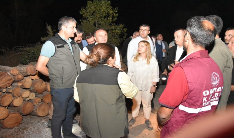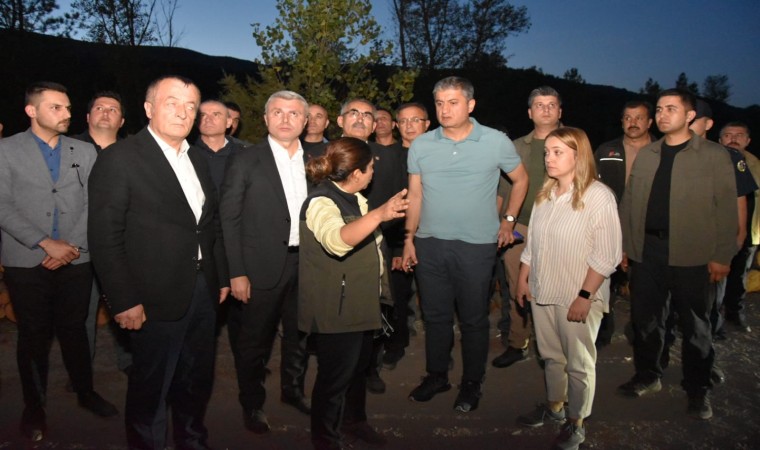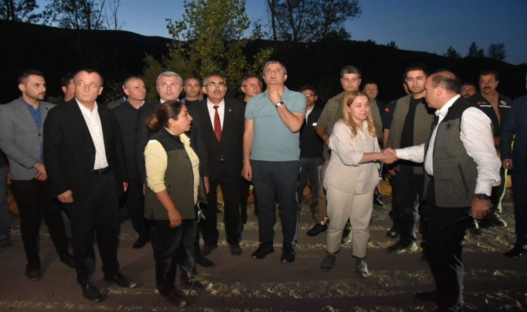 Karabük’ün Ovacık ilçesine bağlı Abdullar köyü Saitler Mahallesi ormanlık alanında çıkan yangın karadan müdahale devam ediyor. Karabük Valisi Mustafa Yavuz, yangın bölgesine gelerek, çalışmalar hakkında bilgi aldı. Yangın ihbarına ekiplerin hızlı bir şekilde müdahale ettiğini aktaran Vali Yavuz, "Öncelikle karadan müdahale edildi, 2 helikopterimiz gün batımına kadar müdahalesini yaptılar fakat havanın kararmasıyla nedeniyle onlar çekildiler. Karadan müdahale devam ediyor. Yaklaşık 29 adet iş makinemiz, arazözümüz alana müdahale ediyor. Arazinin dik ve engebeli yapısı nedeniyle zaman zaman güçlükler oluşuyor. İnşallah kısa sürede yangını kontrol altına alıp, soğutma çalışmalarına başlarız. En güzel ve sevindirici taraf herhangi bir can kaybının olmaması. Aynı şekilde yangın bölgemiz yerleşim bölgelerimize çok yakın bir bölgede değil, o açıdan tahliyeyi gerektirecek bir konuda değil. Gerek Orman İşletme ekiplerimiz, araçlarımız, belediyelerimiz, Özel İdaremizin araç ve gereçleri sahada kontrollü şekilde yangına müdahale ediyorlar. Çıkış sebebi araştırılıyor, ilerleyen saatlerde netleşir diye düşünüyoruz" dedi.