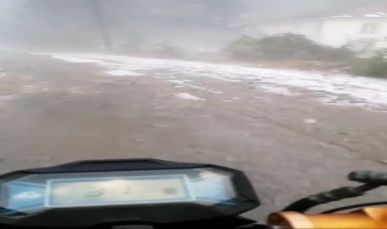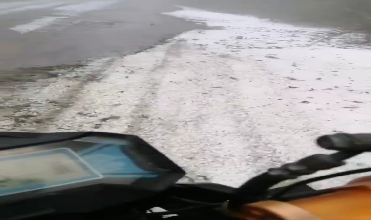Karabük’ün Eskipazar ilçesinde etkili olan fındık büyüklüğündeki dolu yağışı sonrası etraf beyaz örtüyle kaplandı.