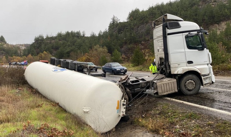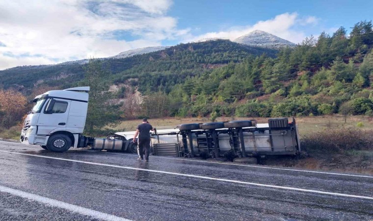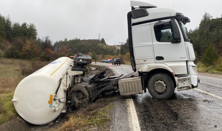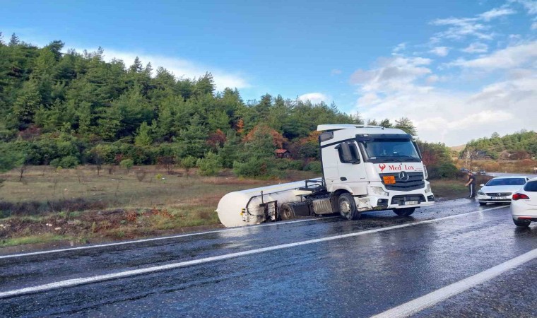 Karabük’te seyir halindeki azot yüklü tanker yoldan çıkarak devrildi.