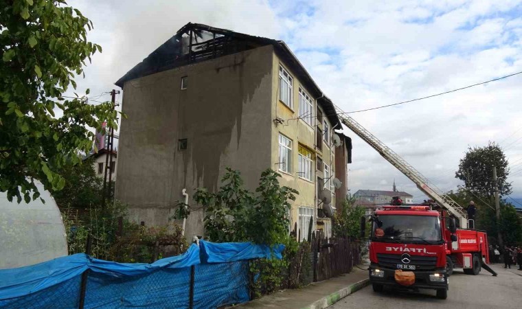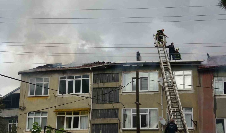 Karabük’te 3 katlı evin çatısında çıkan yangın korkuttu.