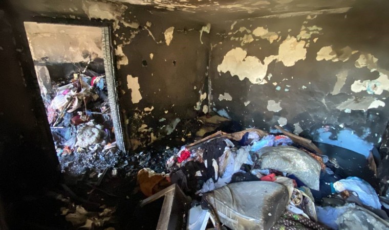Yapılan incelemede evin içerisinin çöple dolu olduğu öğrenilirken yangınla ilgili inceleme başlatıldı.