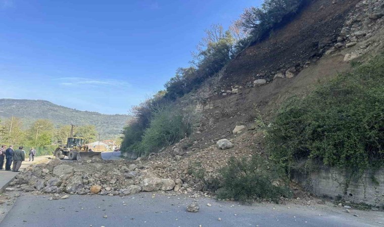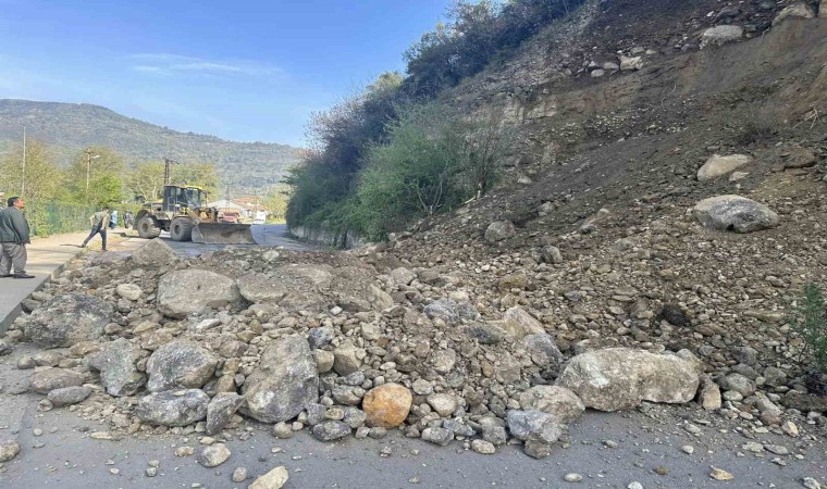 Karabük’ün Yenice ilçesinde meydana gelen heyelan sonrası yol ulaşıma kapandı.