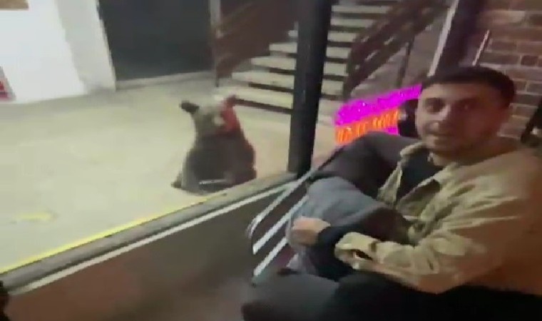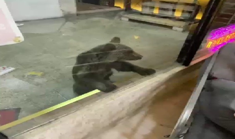 Karabük’te şehir merkezine inen ayılar iş hanına girerek esnaflara saldırdı.