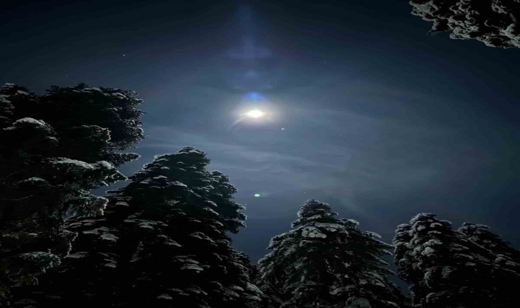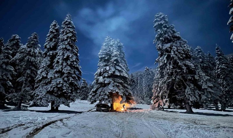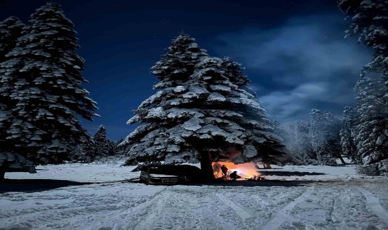 1500 rakımlı Sarıçiçek Yaylası’nda bulunan göletin kenarında kamp yapan iki arkadaş, gördükleri tilkiyi yanlarına çağırarak ekmek verdi. Karnını doyuran tilki daha sonra bölgeden uzaklaşırken, o anlar cep telefonu kamerasına yansıdı. Yaylada ay ışığının aydınlattığı kar örtüsü ise kartpostallık görüntüler oluşturdu.