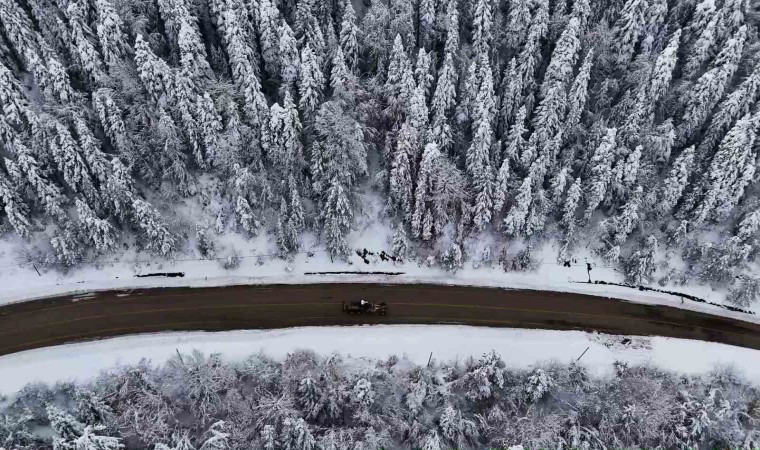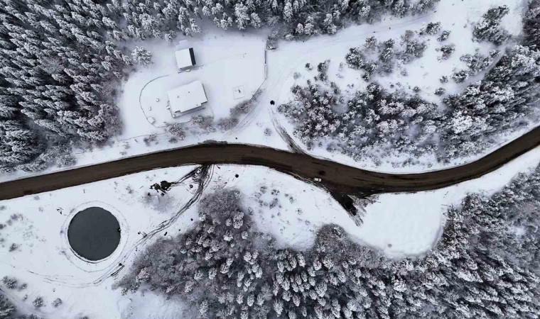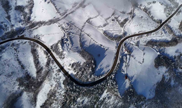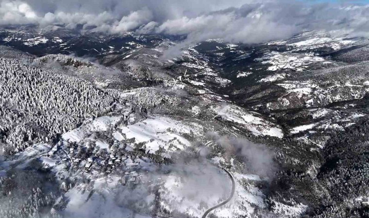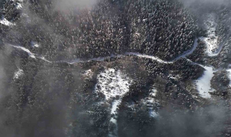 Kar yağışının ardından beyaz örtüyle kaplanan doğa yer yer yoğun sisle birlikte ortaya kartpostallık görüntüler çıkardı. O anlar dron ile görüntülendi.