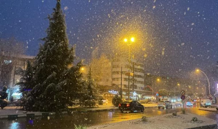 Murat ÖZELCİ/ KARABÜK, (DHA)- KARABÜK’te akşam saatlerinde etkili olan kar yağışının ardından kent merkezi beyaz örtüyle kaplandı.