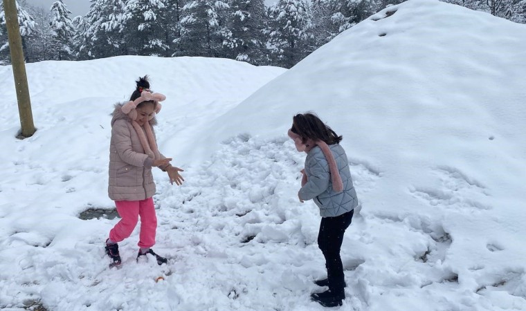 Karabük’te yüksek kesimlerde kar yağışı etkili olurken, kar sürprizi yaşayan sürücüler mola verip karın tadını çıkardı.