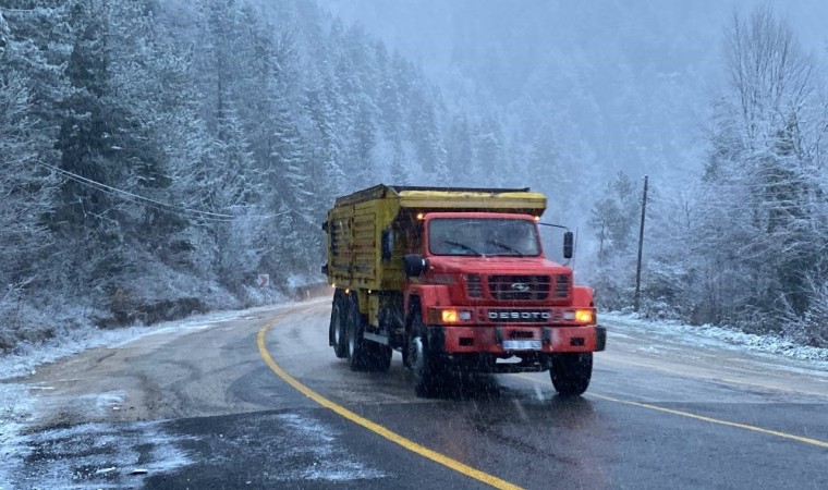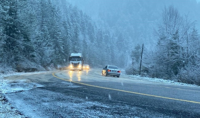 Karabük’te, hava sıcaklığının düşmesinin ardından yüksek kesimlerde kar yağışı başladı.