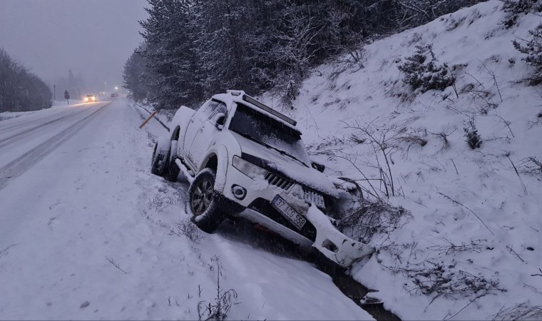 Bartın istikametine seyir halinde olan bir tır dorsesinin kayganlaşan yolda zikzak çizdiği ve bariyere çarptığı anlar cep telefonu kamerasıyla kaydedildi. Karabük istikametine seyir halinde olan arazi aracında da sürücüsünün kontrolünden çıkarak yol kenarındaki kanala düşmesi sonucu maddi hasar oluştu.