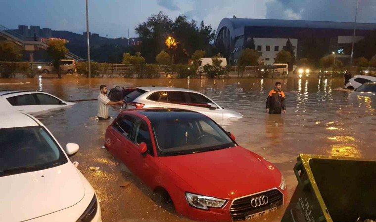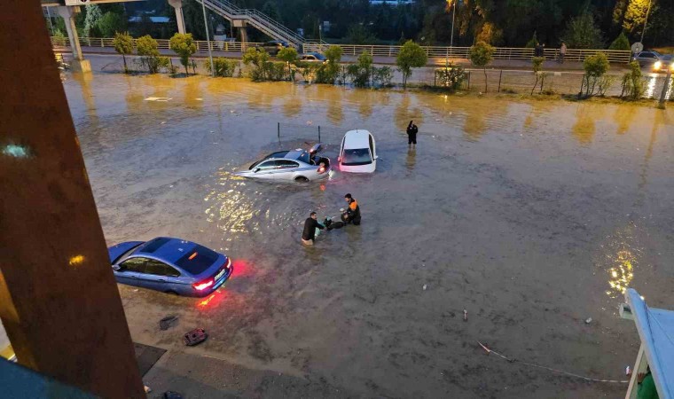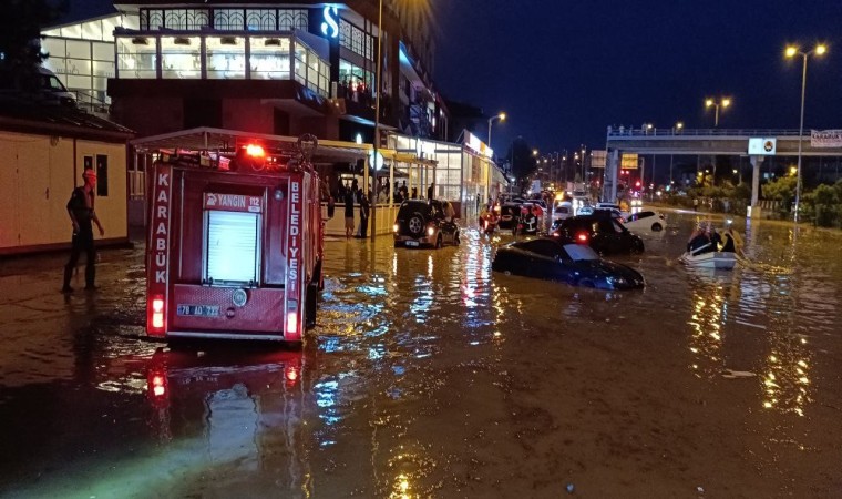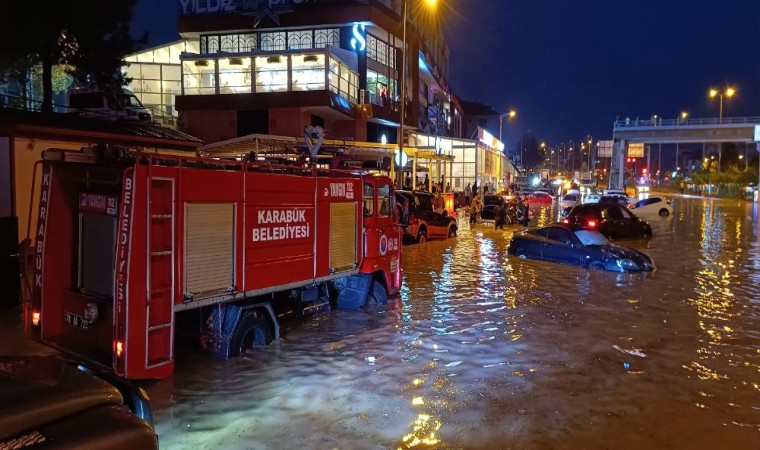 Karabük’te etkili olan sağanak sonrası metrekareye 45 kilogram yağış düşerken yollar göle döndü, araçlar suya gömüldü, çok sayıda ev ve iş yerini su bastı.
