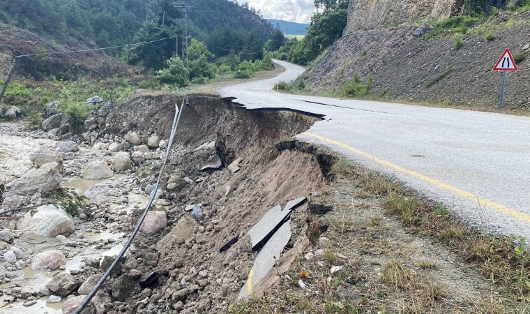 Karabük’te derenin yanındaki grup köy yolunun bir bölümü heyelan nedeniyle çökerken, 10 metre uzunluğunda yarık oluştu.