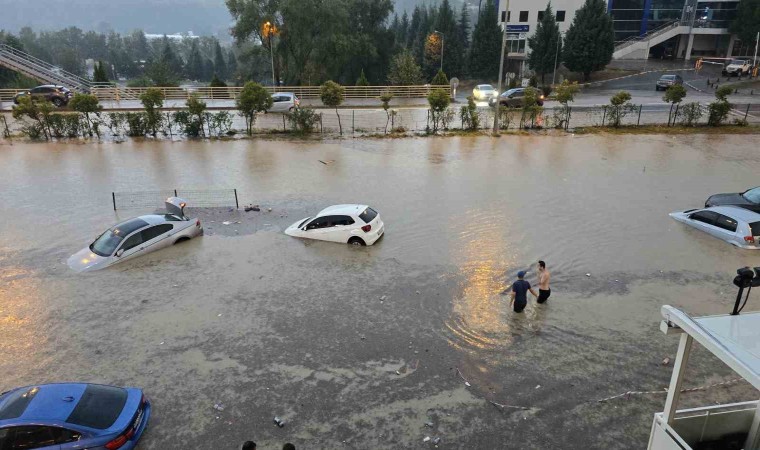 Karabük’te etkili olan sağanak sonrası yollar göle döndü, araçlar suya gömüldü, çok sayıda ev ve iş yerini su bastı.