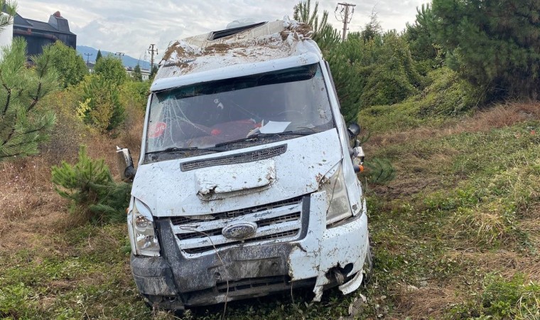 Karabük’te sürücüsünün kontrolünden çıkan işçi servisinin şarampole yuvarlanması sonucu 1 kişi yaralandı. Kazada araçta işçilerin bulunmaması faciayı engelledi.