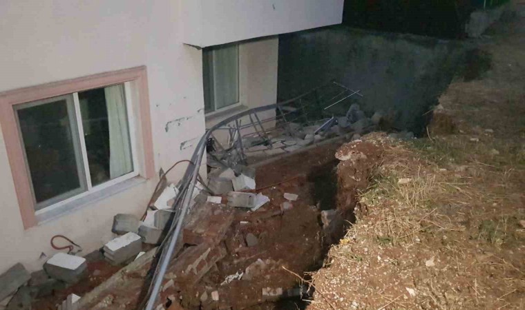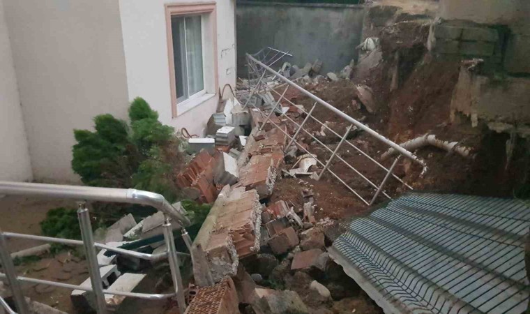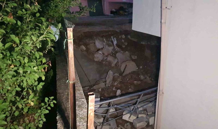 Karabük’ün Safranbolu ilçesinde sağanak yağmur sonrası bir sitenin istinat duvarı çöktü.