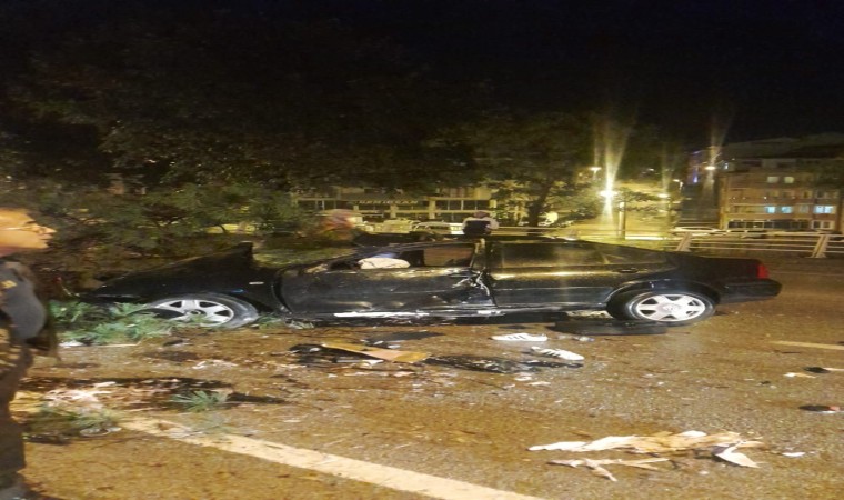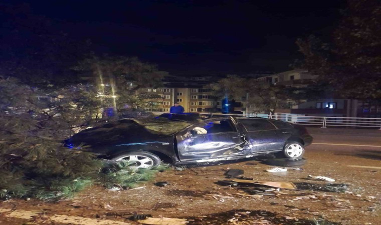 Gece yarısı refüjdeki ağaca çarptıktan sonra takla atarak karşı yöne geçen otomobilin sürücüsü yaralandı.