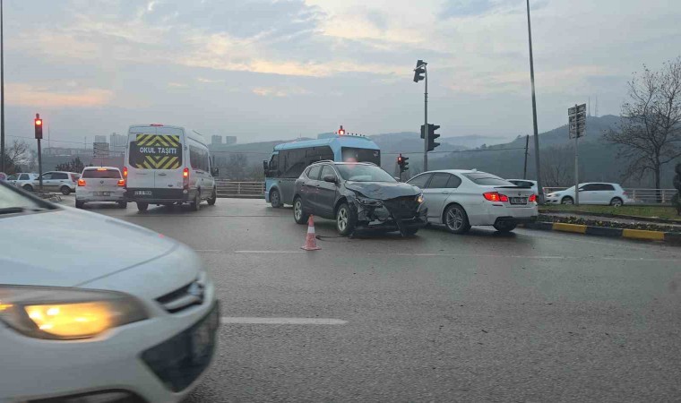 Karabük Sanayi Kavşağı’nda iki otomobilin çarpışması sonucu meydana gelen maddi hasarlı kaza ise araç içi kamerasına yansıdı.