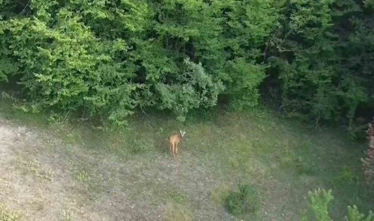 Görüntülere ayı, karaca, tilki, domuz ve kurt gibi yaban hayvanları takıldı. Öte yandan Ünal, ormanlık alanda gezinen bir karacayı da dron ile görüntüledi.