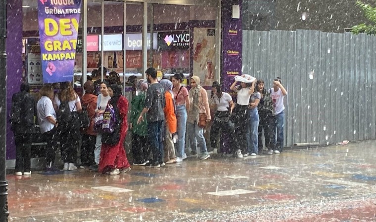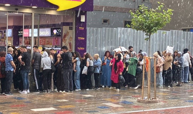 Karabük şehir merkezinde aniden başlayan sağanakta vatandaşlar ıslanmamak için sığınacak yer ararken, ilginç görüntüler ortaya çıktı. Şehir merkezinde kişisel bakım ürünleri satan bir mağazanın kampanyasından yararlanmak isteyen vatandaşlar, şiddetli yağmura rağmen sırada beklediler. Dakikalarca sırada bekleyen vatandaşlar sırılsıklam oldu. Yaklaşık 20 dakika süren yağmurun ardından yıldırımların peş peşe çakması ise kameralara yansıdı.