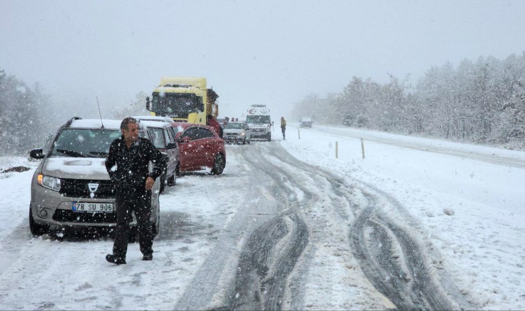 Meteoroloji Genel Müdürlüğü’nün turuncu uyarı verdiği kentte kar yağışı yüksek kesimlerde etkili olmaya başladı. Yağış nedeniyle Karabük-Bartın karayolunun Beştepeler mevkiinde bazı araçlar yolda kalırken, bazı araçlar da maddi hasarlı kazalara karıştı. Sürücülerin yardımına jandarma trafik ekipleri koştu. Yaz lastiği ile yola çıkan sürücülerin zorlandığı karayolunda yol açma ve tuzlama çalışmaları sürüyor.