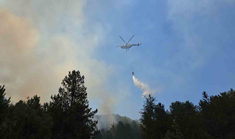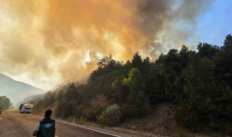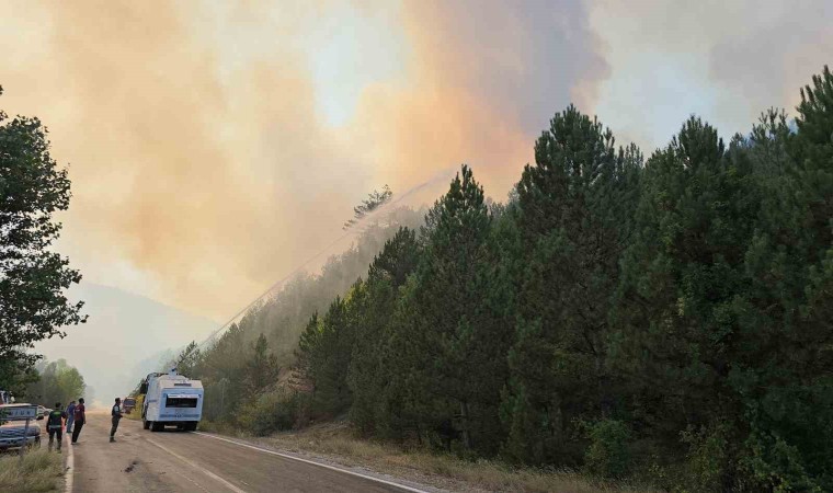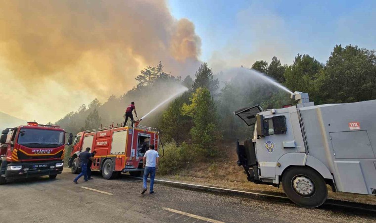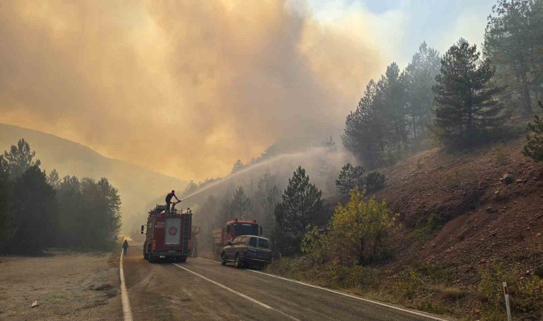 Öğle saatlerinden itibaren rüzgarın da etkili olduğu bölgede alevler karayoluna dayandı. Greyder ve dozerlerin yangının önüne geçmek için sarp bölgede yol açarken yol güzergahı boyunca TOMA, itfaiye ve arazözlerle alevlere tazyikli su sıkarak müdahale ediliyor. Yaklaşık 50 hektar alanın zarar gördüğü bölgede Jandarma Genel Komutanlığına bağlı 2 helikopter de havadan müdahalelerini sürdürüyor.
