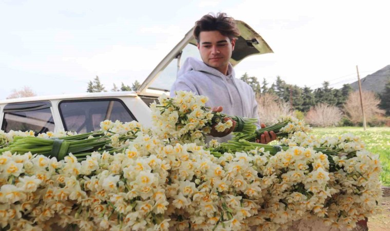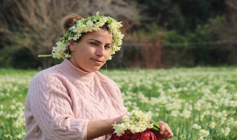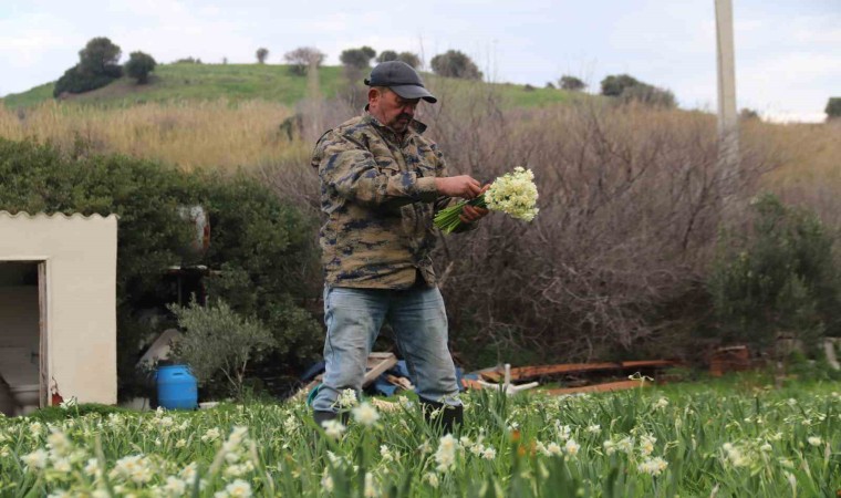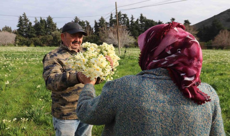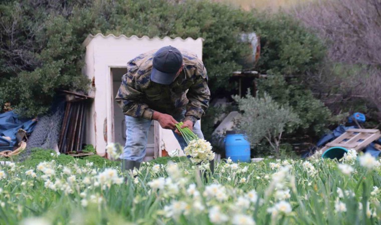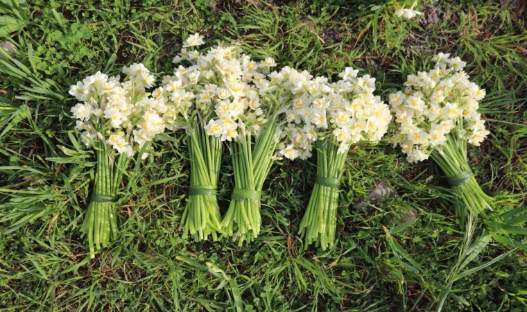 İzmir’in Karaburun ilçesinde, narin görüntüsü ve güzel kokusuyla bilinen, bölgedeki çiftçilerin ise en önemli geçim kaynaklarından biri olan nergis çiçeğinde hasat heyecanı yaşanıyor. 50 adetten oluşan 1 demet nergis çiçeği tarlada 100-120, tezgahta ise 150-200 TL arasında alıcı buluyor.