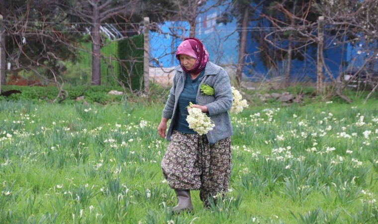 Nergis toplamanın zahmetli olduğunu söyleyen üretici Gülizar Çakmak da “Nergisleri dinlenerek topluyoruz. Öteki türlü belimiz dayanmaz. Sabah 08.00 gibi tarlaya geliyoruz. 17.00’ye kadar çiçekleri topluyoruz. Bu sene üretim güzel. Yağmurlar çok güzel geldi. Genelde susuza bıraktık. Üreticinin yüzü güldü. Parası da güzel oldu” şeklinde konuştu.