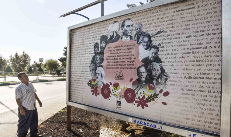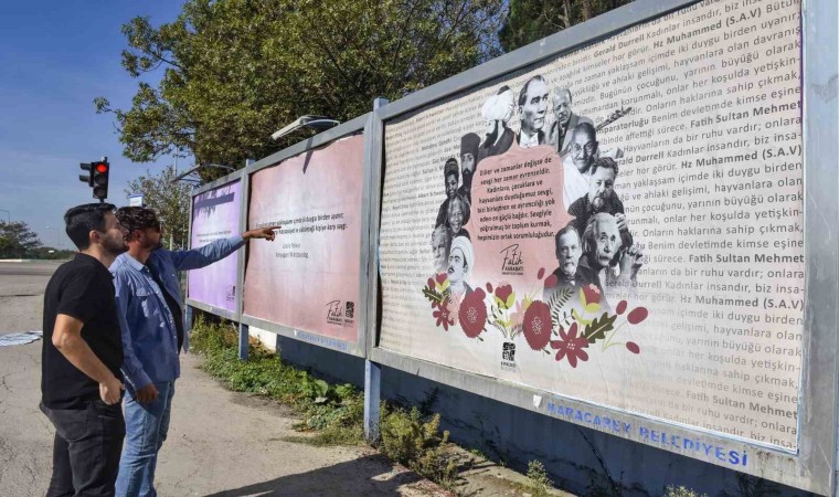 Karacabey Belediyesi, son günlerde artan kadına, çocuğa ve hayvanlara yönelik şiddet olaylarına karşı farkındalık oluşturmak için anlamlı bir projeye imza attı. ’Dünya Kız Çocukları’ gününde, ilçe genelindeki tüm açık hava reklam alanlarında dünyaca ünlü tarihçi, yazar ve liderlerin kadınlar, çocuklar ve diğer canlılara karşı söylemlerinin yer aldığı reklam panoları vatandaşlar tarafından memnuniyetle karşılandı.