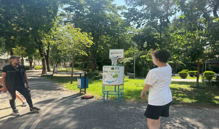 Karacabey Belediyesi sıfır atık hareketini bu kez parklarda konumlandırdığı basket potalarıyla eğlenceli hale getirdi. "Geleceğini Çöpe Atma, Basket At!" sloganıyla yola çıktıklarını belirten Belediye Başkanı Fatih Karabatı “parklarımızda toplam 7 farklı lokasyonda geri dönüşüm kutularına entegre olarak basket potaları yerleştirdik” dedi.