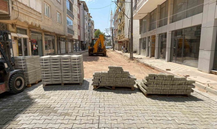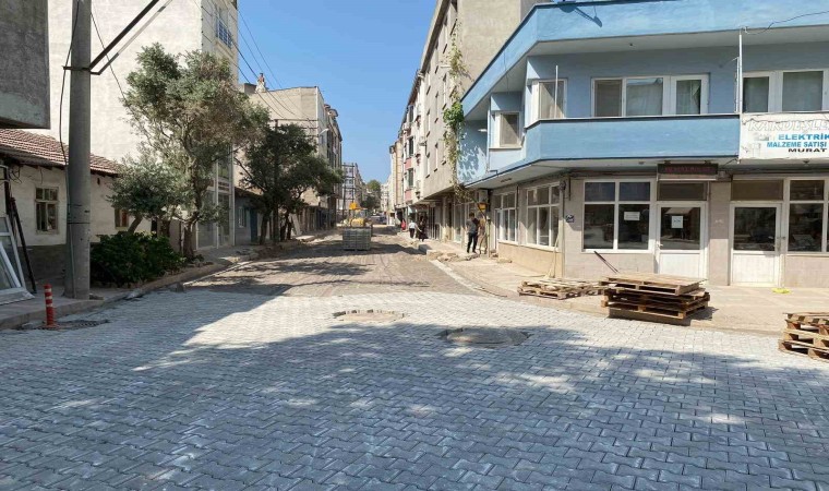 Bursa Büyükşehir Belediyesi tarafından Karacabey ilçesinde sürdürülen içme suyu, kanalizasyon ve yağmur suyu hattı imalatı çalışmaları hızla sürerken, alt yapının tamamlandığı bölümler, parke taş uygulamalarıyla daha konforlu hale getiriliyor.