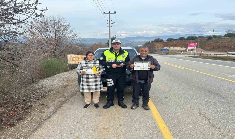 Karacasu İlçe Emniyet Amirliği Trafik Tescil Büro personelleri, sabit yol uygulaması kontrol noktasında sürücülere trafik güvenliği konusunda önemli uyarılarda bulunurken, yapılan bilgilendirmede sürücülerin trafik kurallarına uymalarının hayati önem taşıdığı vurgulandı.