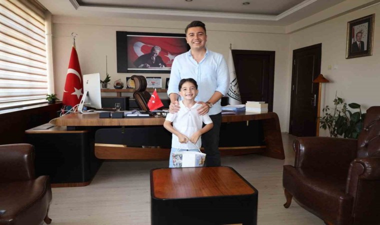 Aydın’ın Karacasu ilçesinde, cumhuriyetin 100. yılı kapsamında düzenlenen ’Yüz Genç Yazar’ projesi çerçevesinde Karacasu Şehitleri Ortaokulu 5. sınıf öğrencilerinden İpek Nas Karacasu Kaymakamı Mehmet Gündoğdu’yu ziyaret ederek kendi yazdığı ’Bizim Evin Halleri’ isimli öykü kitabını takdim etti.