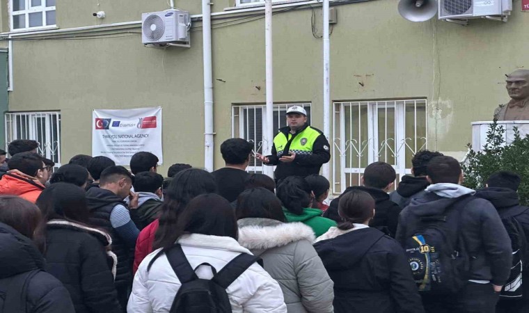 Karacasu İlçe Emniyet Amirliği Trafik Tescil ve Denetleme Büro personelleri, ilçedeki öğrencilere yönelik trafik güvenliği eğitimi düzenledi.