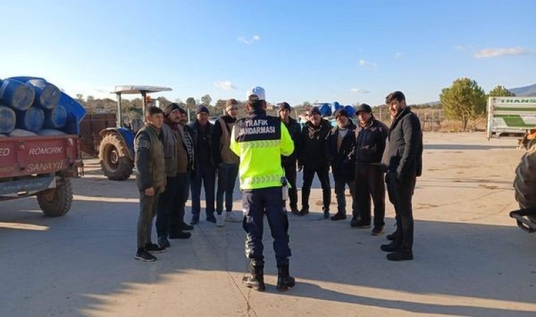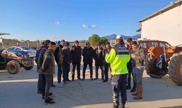 Aydın’ın Kuyucak ilçesinde traktör sürücülerine jandarma tarafından reflektör eğitimi verildi.