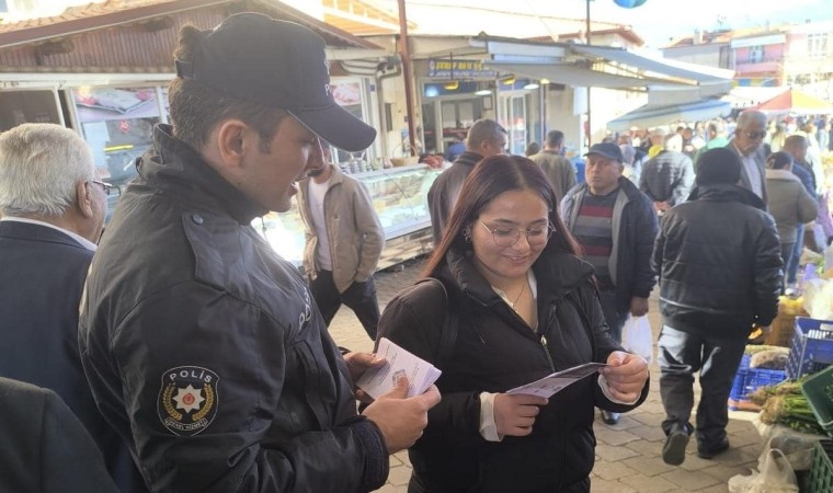 Karacasu İlçe Emniyet Müdürlüğü ekipleri halkın daha güvenli bir yaşam sürmeleri için çalışmalarını sürdürüyor. İlçe pazar yerinde polis ekipleri tarafından vatandaşlara dolandırıcılık ve mala karşı işlenen suçlar hakkında örnek olaylar anlatılarak bilgilendirme yapıldı. Ekipler, dolandırıcılık olaylarına karşı dikkat edilmesi gereken ayrıntılar ve aldatıcı yöntemlere karşı duyarlı olunması konusunda vatandaşlara uyarılarda bulunuldu. ilgili konularda hazırlanan broşürleri dağıtılan ekipler vatandaşların suçla mücadelede bilinçlenmelerine katkı sağlandı. Öte yandan vatandaşların herhangi bir mağduriyet yaşamaları durumunda 112 Acil Çağrı Merkezi’ni aramaları konusunda da uyarılarda bulunuldu.