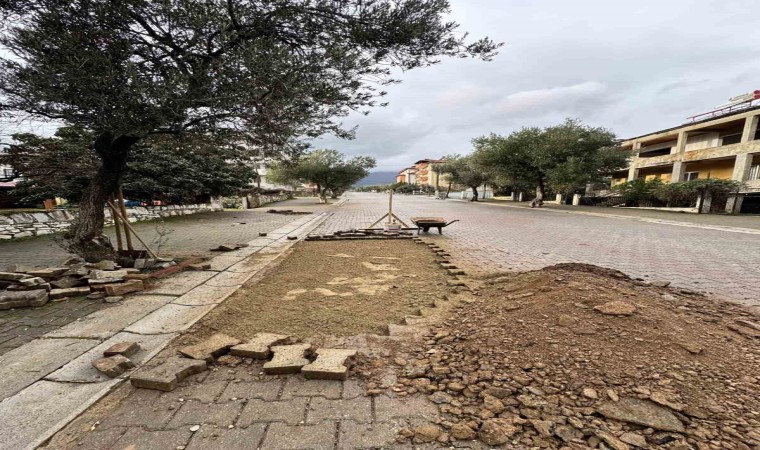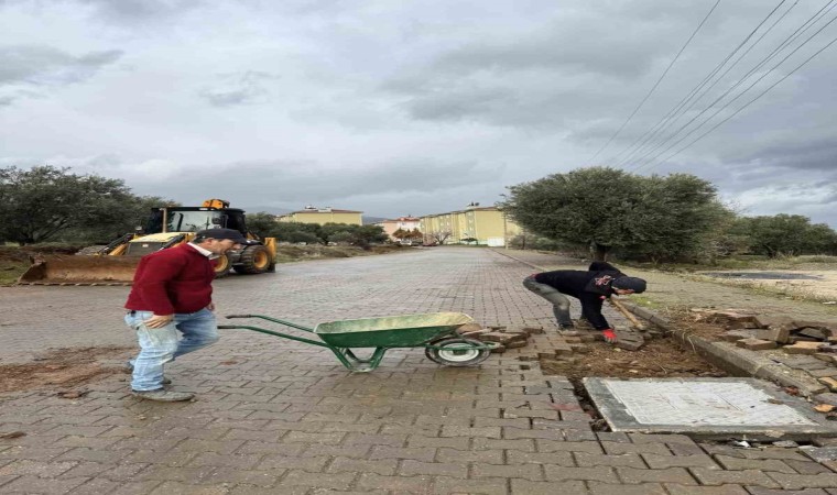 Aydın’ın Karacasu ilçesinde yağışlardan zarar gören yollarda bakım ve onarım çalışmaları devam ediyor.